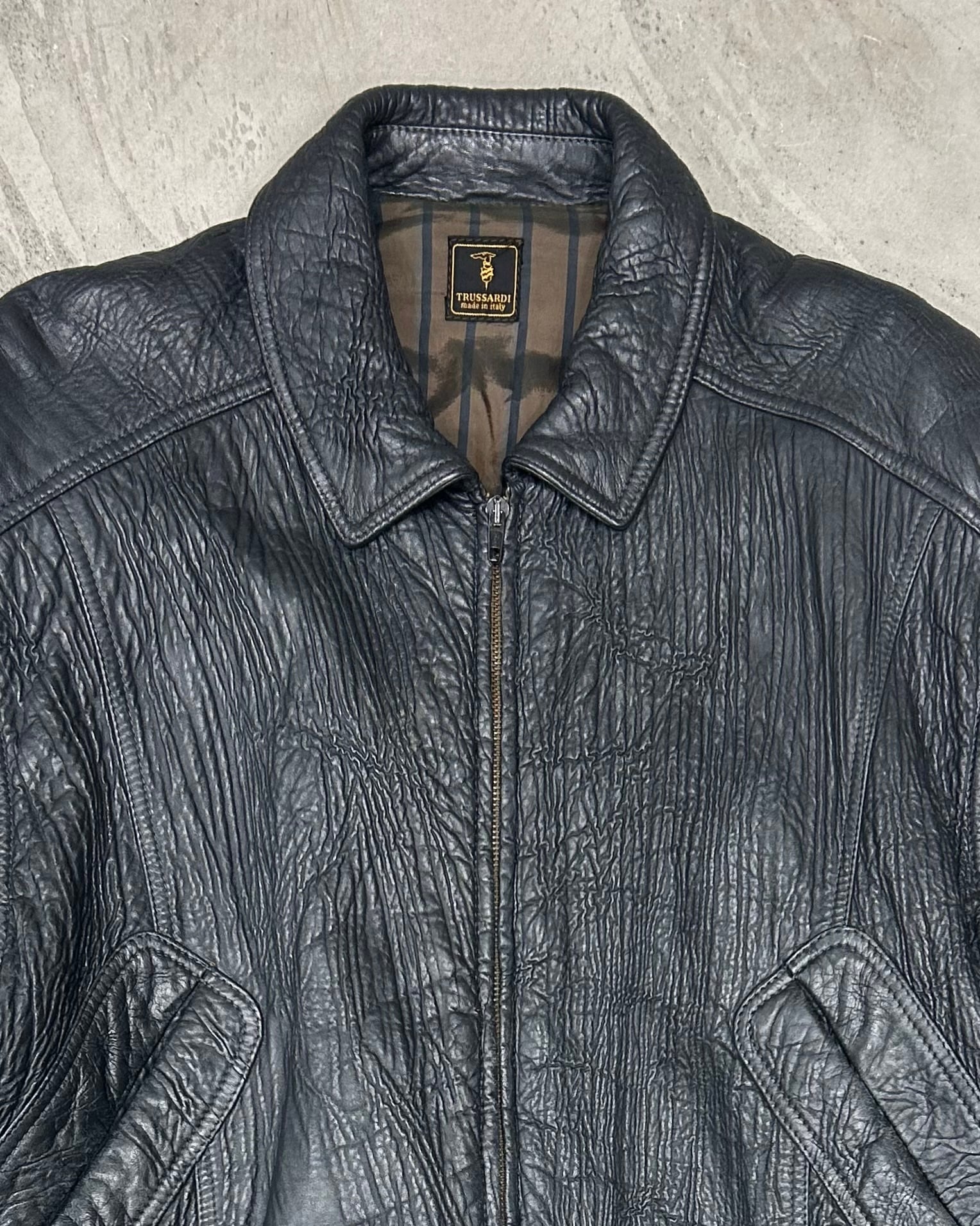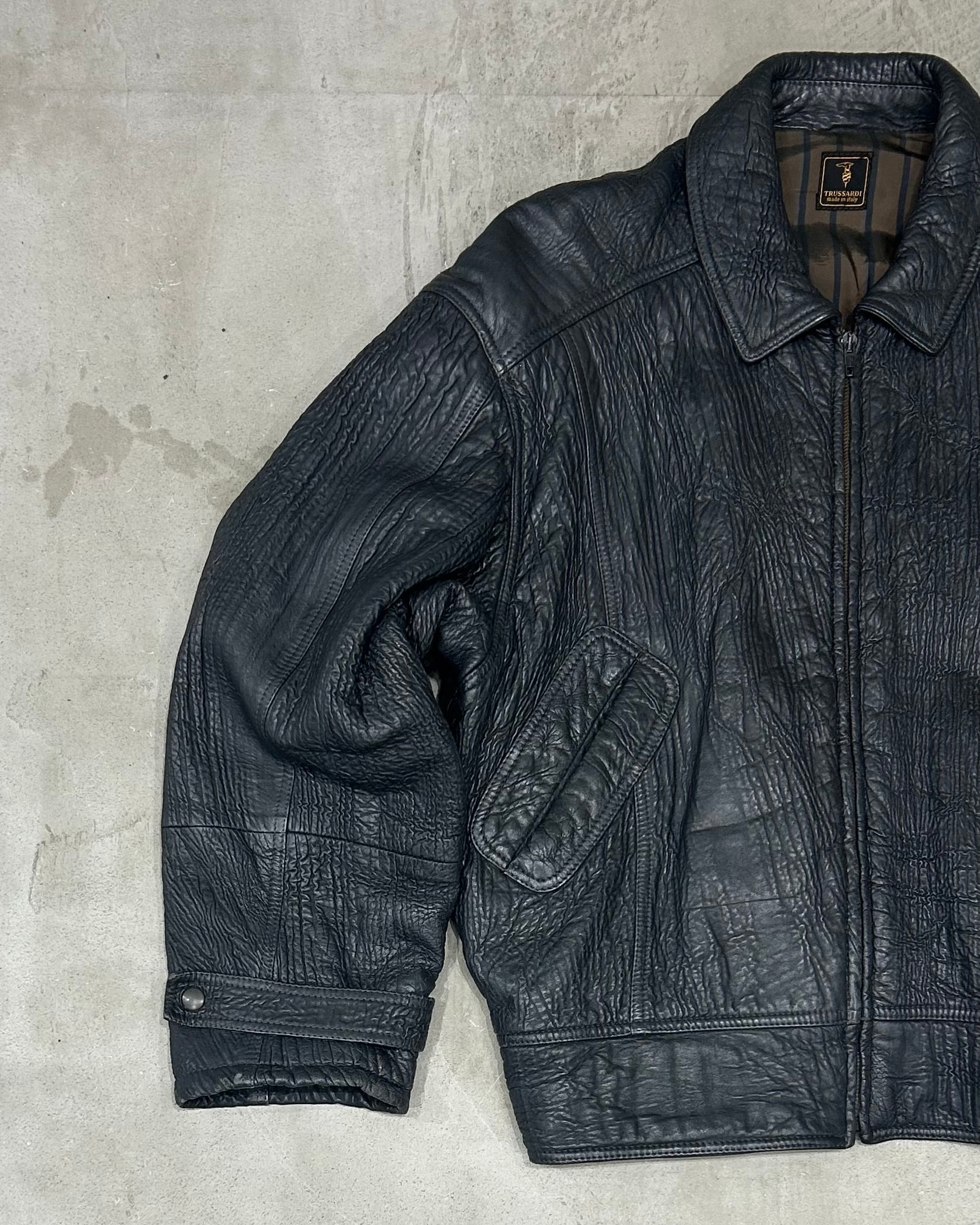 Circa 1980's TRUSSARDI Leather Pleats Jacket